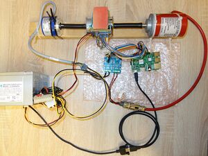 - Die beiden Multiturn-Absolut-Drehgeber sind jeweils über ein RS422-TTL-Konverter an einen RaspberryPI B+ angeschlossen.